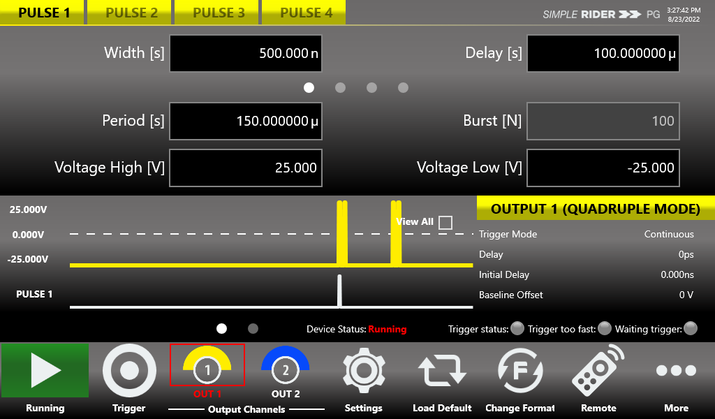 Active Technologies Pulse Rider PG-1500系列脉冲发生器通过图形界面和触摸屏显示,轻松创建具有不同脉冲宽度、重复率和幅度的脉冲。