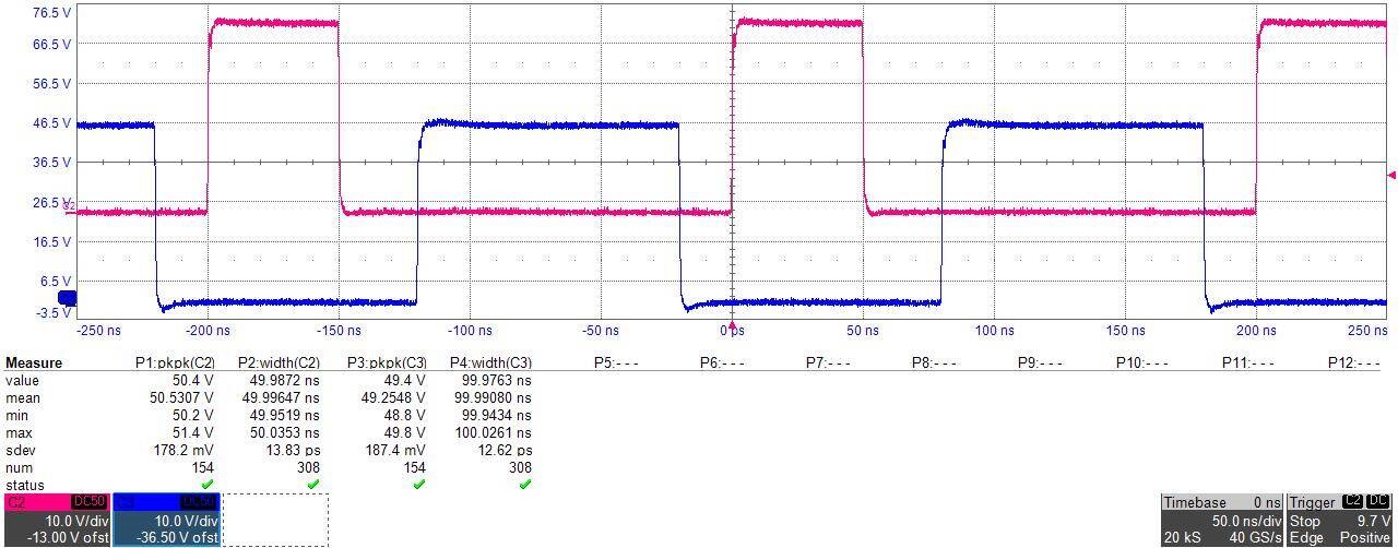 信号输出电压可调至50伏峰峰值,窗口范围为±25伏,边缘速率为400 ps。