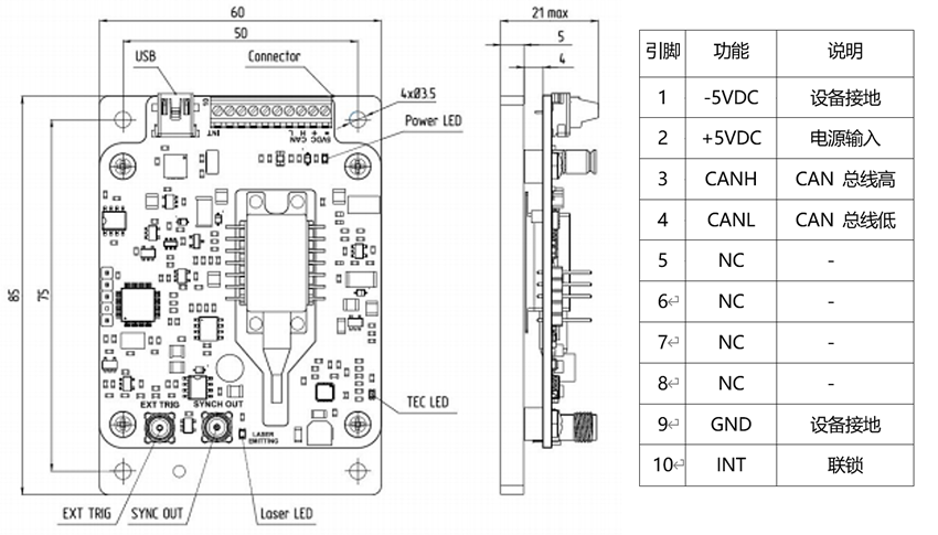 驱动器电路需要一个 5 VDC 电源。所有其他所需电压均由高频开关电源在电路板上产生。驱动器为双向比例积分微分 (PID) 热电冷却器控制器 (TEC) 供电,电流能力为 1.5 A,电压能力为 4 V。PLD-NS-GSS-Tr 的主要参数(脉冲电流、偏置电流、上升时间、脉冲宽度、重复频率、温度设定)由计算机接口控制。