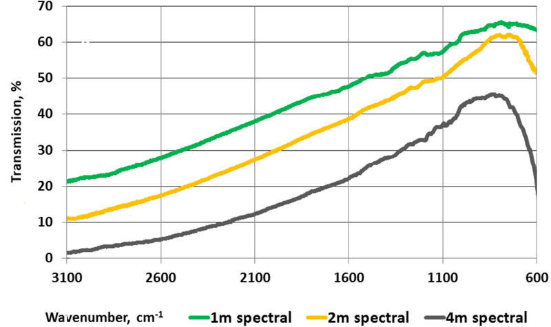 不同长度多晶光纤的透射光谱(光谱质量等级)