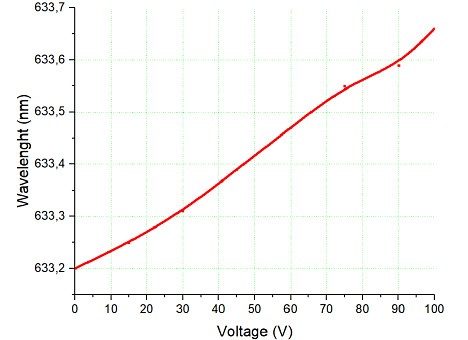 7、打开激光器(功率调到12mW),再用调节锁相放大器的电压0-10V,用光谱仪查看输出波长的变化