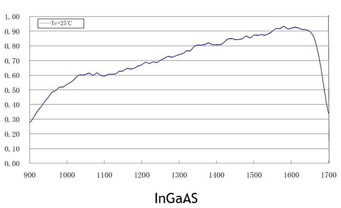 43.6mV/uW @850nm | 1 mV/nW @960nm | 9mV/uW@1550nm | |