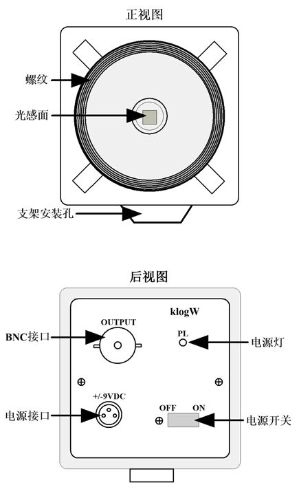 PDAM20A6B4G-InGaAS光电探测器是一种额定带宽,固定增益的光电探测器,用于检测光信号。光信号从光电sensor感应面输入,输出通过BNC以电压形式输出。本产品能测量800nm到1700nm波长范围的光信号。具体性能参数数据参考附录表格。LD-PD光电探测器外壳带有英制1/4"-20螺纹的安装孔,可以方便的安装固定。 外壳部分还附带两种不同尺寸的螺纹接圈,这两种螺纹接圈分别适合于工业应用和科研应用,可以方便适配外部光学部件,如滤光片,衰减片,镜头,FC光纤转接盘等。该产品包含一个塑料防尘盖。具体安装请参考阅读第三章节。 每个光电探测器都配有一个输出±9V的直流线性电源,该直流电源的输入额定电压为220VAC/50HZ。