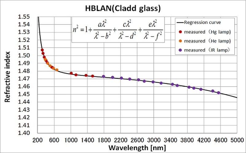 HBLAN玻璃的折射率(用于包层,典型)