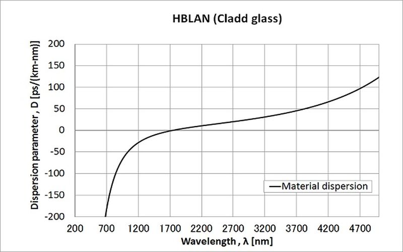 HBLAN玻璃的材料分散性(用于包层,典型)