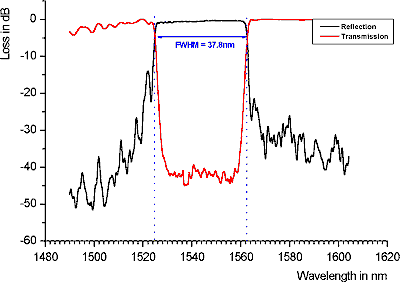 利用“啁啾”(FBG结构内周期的线性变化)光纤布拉格光栅技术,我们能够为FBG提供非常宽的带宽和高的抑制。我们可以提供广泛的中心波长、带宽和反射率。