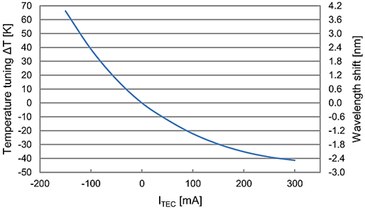 温度/波长调谐曲线通过TEC电流