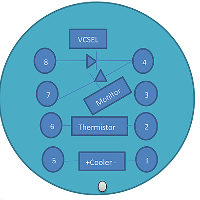 4 | VCSEL Cathode (–)/PD Monitor Anode (-) | 8 | VCSEL Anode (+) |