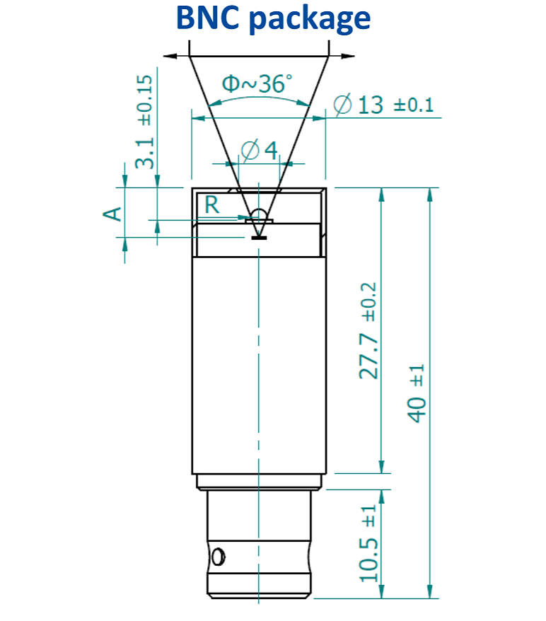 A—BNC型封装顶部与焦平面的距离