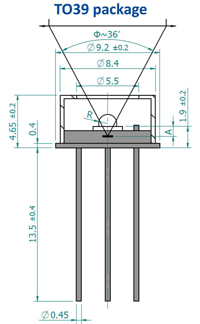 A—TO39型封装顶部与焦平面的距离