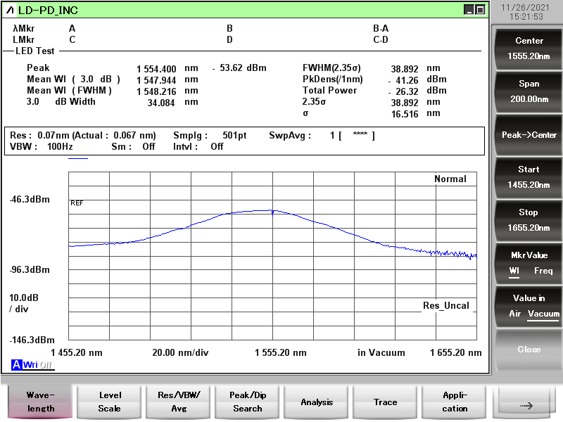 可根据客户要求在C区(1520-1570 nm)选择中心波长