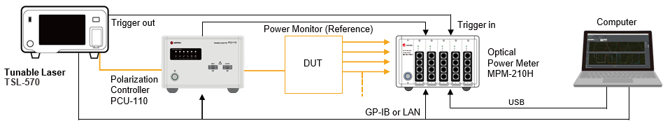搭配偏振控制器 PCU-110 和功率计 MPM-210H 进行 IL/PDL 测试配置