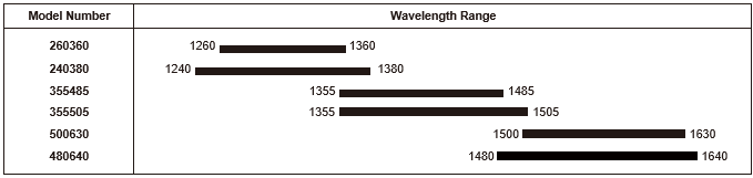波长特性 | 波长范围 *8 | nm | 1240 - 1380 / 1355 - 1505 / 1480 - 1640 | |||