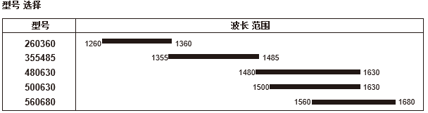 波长范围 :1260-1360nm 和 1500-1630nm