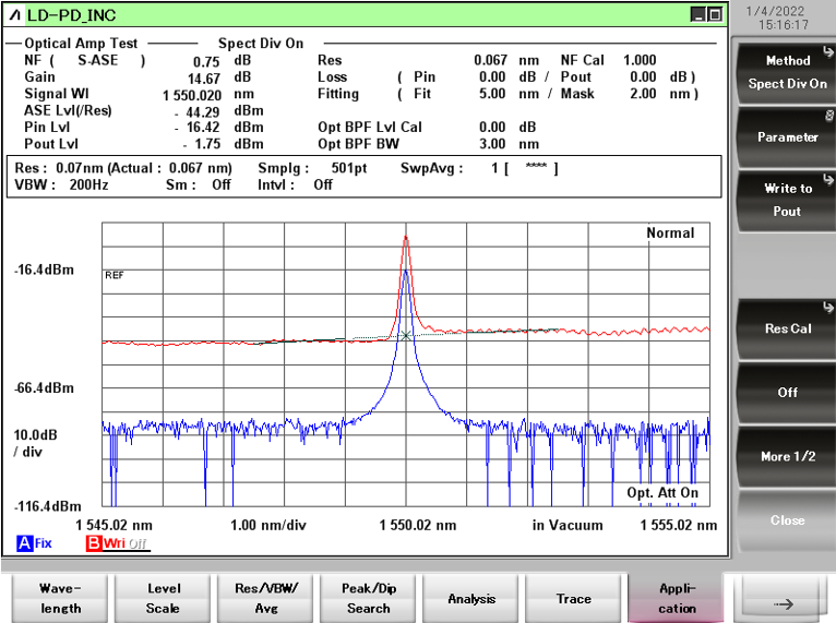SOA放大器光谱图(引脚=0dBm,I=450mA)