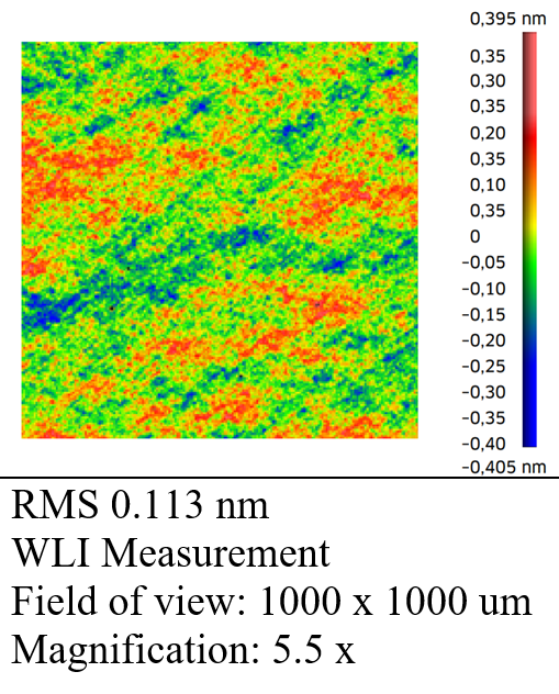 结果已通过我们的内部腔衰荡设置和散射测量得到证实。对于上述值,使用表面粗糙度 < 1 Å rms 的超抛光基板是必要的。用白光轮廓仪检查它们的质量。下面是一些测量值: