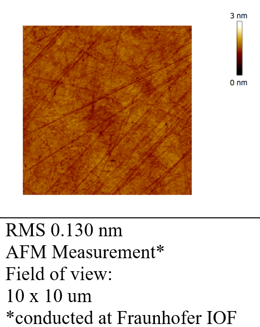 | superpolished | RMS<0.1 nm*(<1Å) | <入/10 | on request |