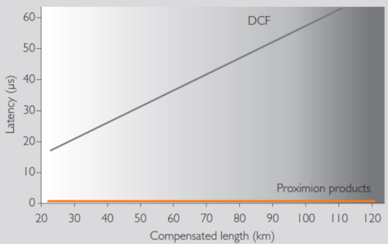 来自Proximion的色散补偿产品的延迟可以忽略不计。 与基于微秒级的DCF解决方案相比,延迟是纳秒级。这使得Proximion的产品非常适合支持低延迟服务的高速网络,直接将链路延迟降低了10%到20%。