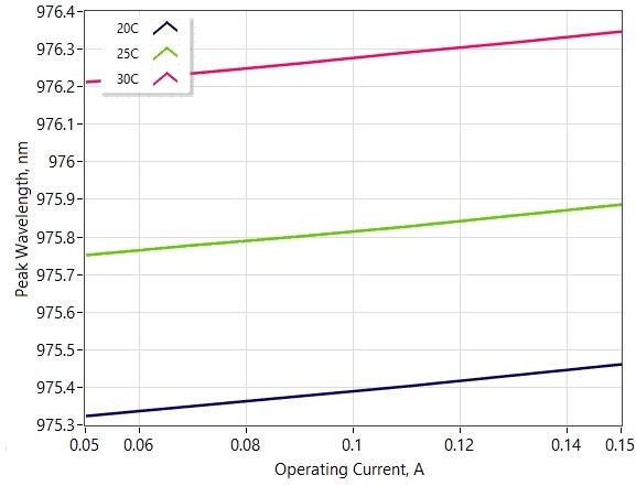 峰值波长范围:968-986nm;输出功率:30mW;工作电流:100mA;阈值电流:20mA;侧模抑制比:55 dB;波长温度可调性:90pm/K;波长电流可调性:1.5pm/mA;偏振消光比PER:18dB;光纤类型: HI1060;