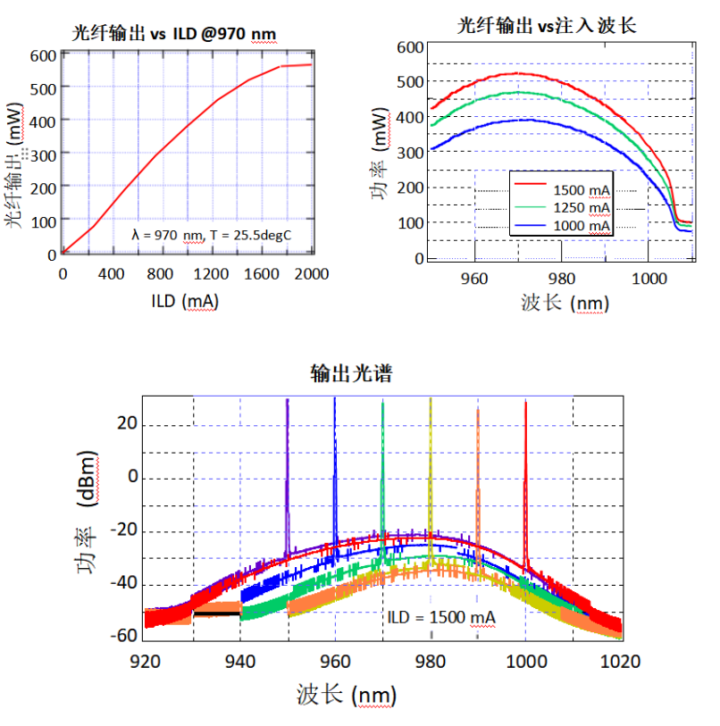 增益频带@>30dB:920-1000nm; 光纤耦合效率最大波长( λc):970nm;保偏光纤输出:500mW; 偏振消光比:≥20dB;LD 电流调制带宽:≥1MHz; 光纤连接器:FC/APC,慢轴对齐