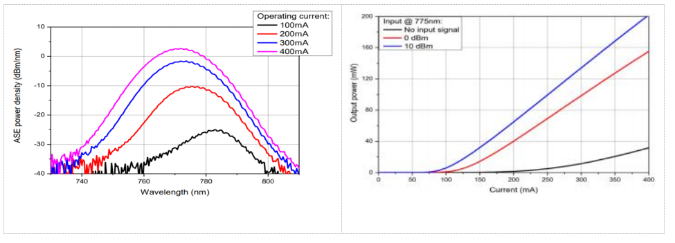 SOA0780016PM40DBLXXX -> 增益Max. 为 780nm 时增益为 40dB,增益带宽为 16nm,PM-980 光纤,带松套管
