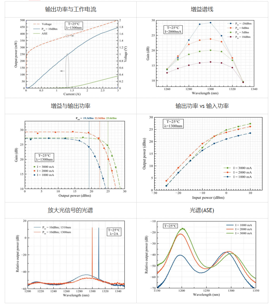 中心波长:1300nm;饱和输出功率@-3dB:22dBm;带宽@-3dB:60nm;偏振消光比:16dB;小信号增益@Pin=-20dBm:28dB,光纤类型:HI1060或PM980(PM1300),接头类型:FC/APC;需要套管请备注