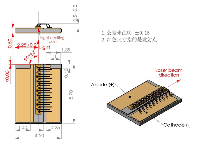 该设备是开放式散热器二极管激光器;它只能在洁净室环境或防尘外壳中操作。必须控制工作温度和相对湿度,以避免激光面上出现水凝结。必须避免激光面受到任何污染或接触。
