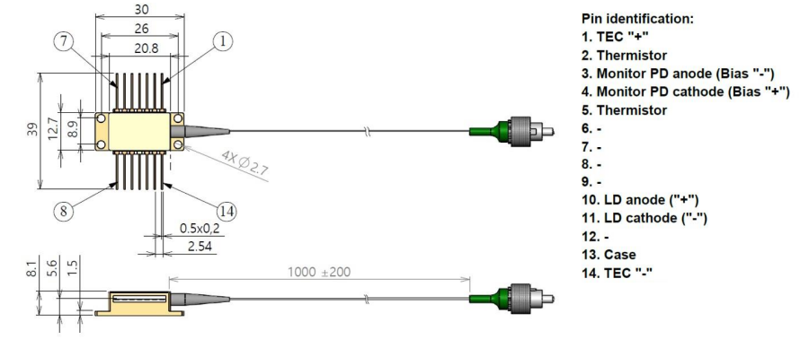 SLD1060015PM250MLXXX -> 输出功率为 250mW,平均波长为 1060nm,带宽为 15nm,PM-980 光纤,