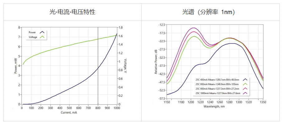 SLD1250110PM004MLXXX -> 1250nm 平均波长和 110nm 带宽时输出功率为 4mW,PM-980 光纤,带松套管