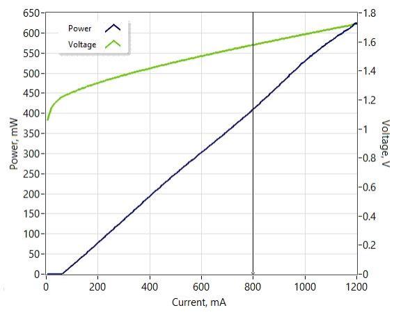 | 脉冲模式下的峰值正向电流(<1ns 脉冲宽度,<10% 占空比) | 2600 | mA | |