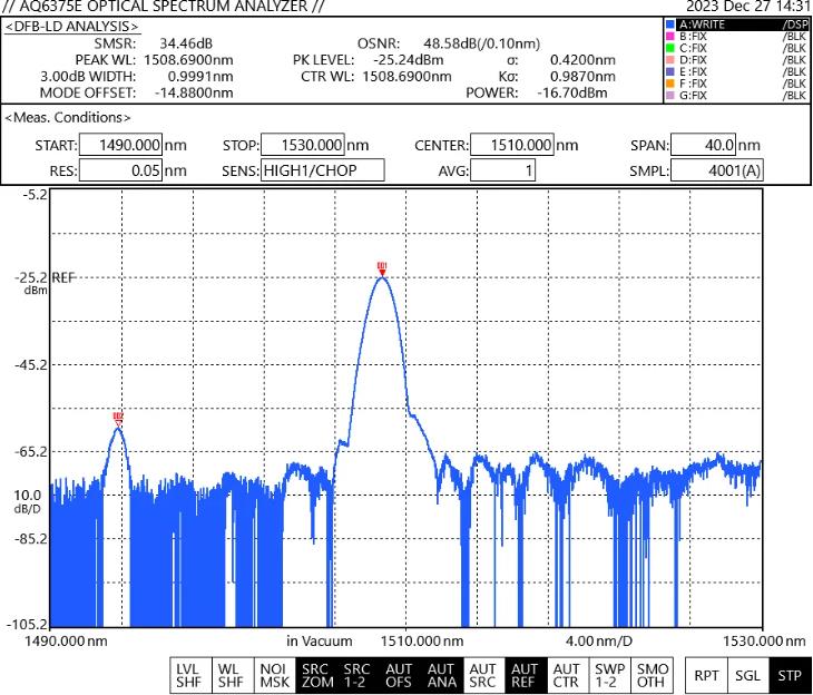 无输入电压下1550nm光谱图