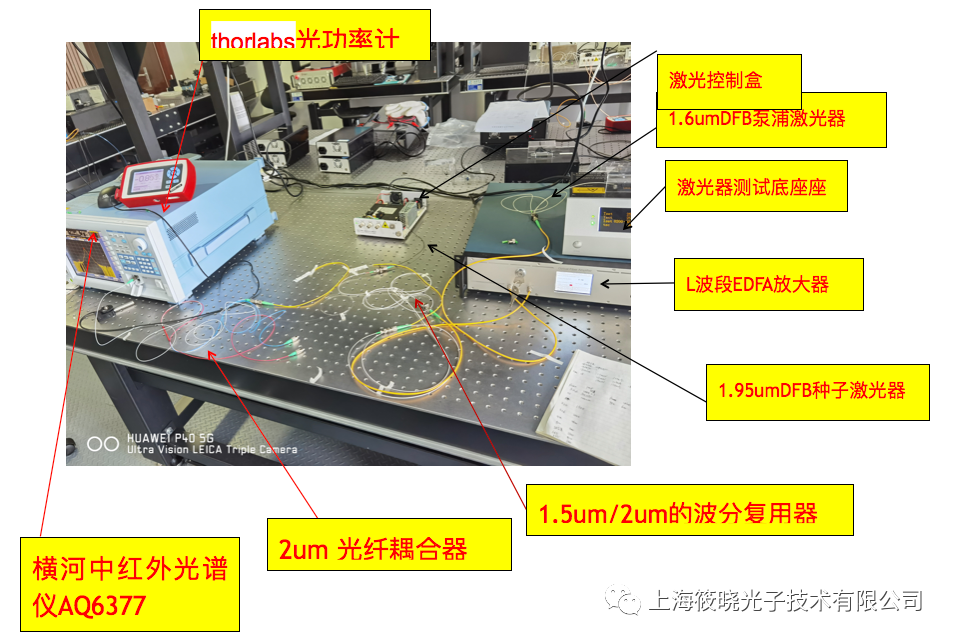 我们304永利集团采用1.95um的激光器作为种子源,用1.6um的激光器作为泵浦放大,由于激光器本身输出功率不够大,我们使用了L波段的EDFA放大器对1.6um的光进行放大。再把种子激光跟泵浦光通过波分复用器耦合在一起,输入到2um的一段掺铥光纤中,经过光纤吸收后,传输到2um的耦合器中,一分为二,把测量的谱在中红外横河AQ6377光谱仪上观察波形。之后再利用Bristol 波长计观察做出来的TDFA放大器自发辐射的光谱。