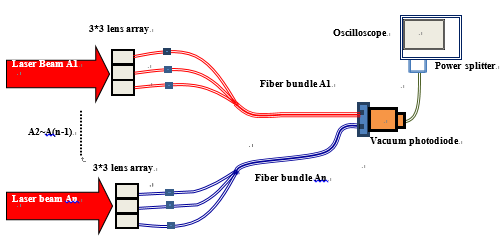 高功率激光装置中,脉冲波形的准确测量对于评估装置输出性能和物理实验数据分析具有重要意义。传统的透镜耦合单模光纤测量方式抗干扰能力强,但近场耦合效率低,测量结果难以反映光束近场的整体时间波形;可采用光束聚焦后直接进入大口径真空光电管的方法测量,结果准确,但抗干扰能力和经济性较差。