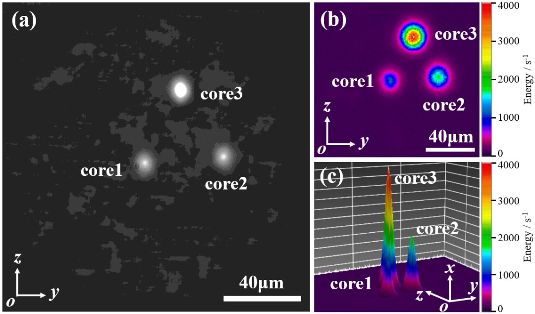 飞秒激光器,多芯光纤传感,光纤,利用直写波导实现光信号空分复用的多芯光纤矢量位移传感器。通过飞秒激光直写技术在多芯光纤中制备耦合波导,可以将中间芯的传输光高效耦合至侧芯之中,因此将多芯光纤与单模光纤熔接即可实现多芯光纤传输信号的空分复用。进一步地,在多芯光纤不同侧芯内写制光纤布拉格光栅(FBG),并基于不同侧芯对光纤弯曲应变的各向异性响应,实现矢量位移测量。